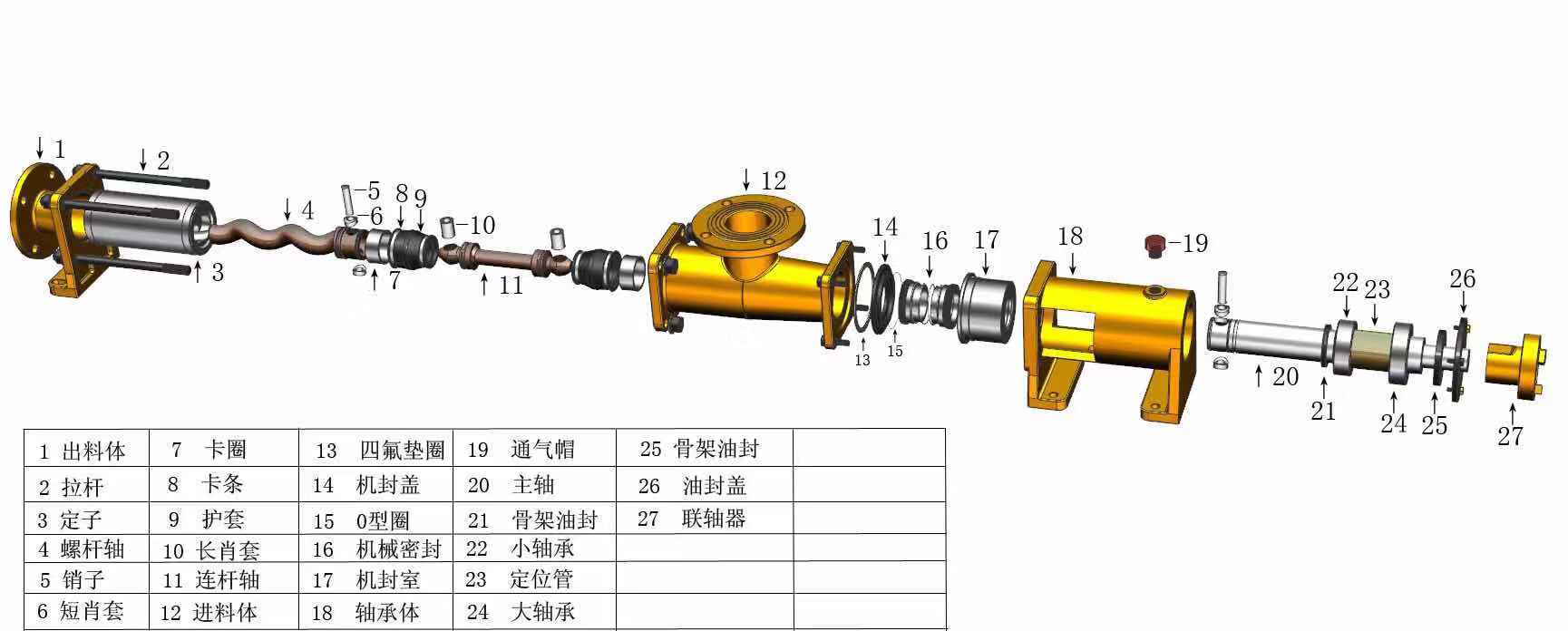 3)因为污泥螺杆泵内的回转部件惯性力较低,故可使用很高的转速;